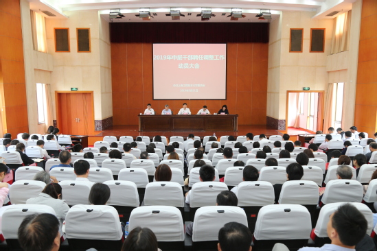 党委书记李江同志代表学校党委作了2019年干部聘任调整工作动员。他首先对中层领导班子和广大干部,尤其是即将到龄退休的中层干部在这三年里所做出的贡献表示了衷心的感谢。他指出,干部聘任调整工作是学校党委的一项重要工作,也是关乎学校未来建设和发展的大事,全体教职员工要统一思想,凝聚共识,充分认识干部聘任调整工作的重要意义。他指出,做好干部聘任调整工作是实现学校事业高质量发展的组织保证,是落实任期目标责任制的必然要求,也是加强中层领导班子建设、提高领导干部队伍素质的重要途径。他要求各级党组织、各部门要加强领导,坚持原则,严肃纪律,确保风清气正的工作氛围。他强调各级干部要顾全大局,正确对待,确保聘任调整期间各项工作的正常运转。工作中注意以下几点要求:广泛动员合理定位;客观评价,精准实施;顾全大局,认真履职。他希望大家认真学习有关文件精神,进一步提高认识,以积极向上的状态迎接挑战,以健康平和的心态服从安排,确保新一轮干部聘任调整工作顺利进行。