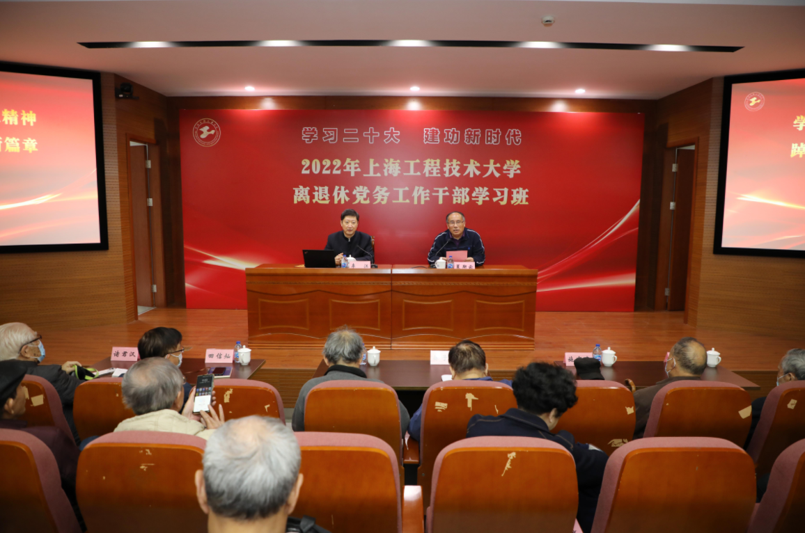 学习班上,校党委书记李江教授为广大离退休老同志作《学习宣传贯彻党的二十大精神 推动学校事业高质量发展》专题辅导报告。李江书记从党的二十大召开的深刻背景和重大意义、深刻领会“两个确立”的决定性意义、党的二十大报告的主要内容、推动学校事业高质量发展四个方面为与会同志全面解读了党的二十大精神,并对如何推动学校事业高质量发展作出了部署:一是学习要有深度,要完整准确地领会把握二十大精神,把学习贯彻党的二十大精神与学习习近平新时代中国特色社会主义思想紧密结合起来,与深入贯彻习近平总书记考察上海重要讲话精神紧密结合起来,与落实市第十二次党代会工作部署紧密结合起来;二是宣传要有热度,要有重点、分步骤、多层次开展学习宣传活动,迅速掀起学习宣传热潮,确保把党的二十大精神宣传到位。通过全方位、立体式宣传,深入解读二十大报告和新修订的党章,奋力展现新时代学校事业高质量发展新篇章的崭新气象;三是研究要有厚度,要大力加强党的二十大精神阐释研究和习近平新时代中国特色社会主义思想的系统化、学理化、学科化研究,多学科、多维度、多层次阐释党的创新理论,力争取得好成果;四是贯彻要有效度,要不折不扣落实好党中央的决策部署,进一步对标对表党的二十大确定的宏伟蓝图和目标任务,以更高标准、更大力度推动学校各项工作。以更加奋发有为的姿态主动服务科教兴国战略、人才强国战略、创新驱动发展战略,加快建设一流的高水平现代化工程应用型特色大学。
