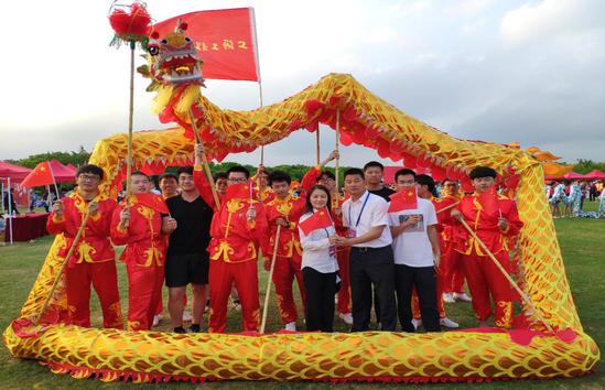 赛中校腾飞舞龙队举行了“我和我的祖国”快闪活动,全体参赛队员共同挥舞国旗、校旗同祝工程大越来越好!共祝祖国繁荣昌盛!