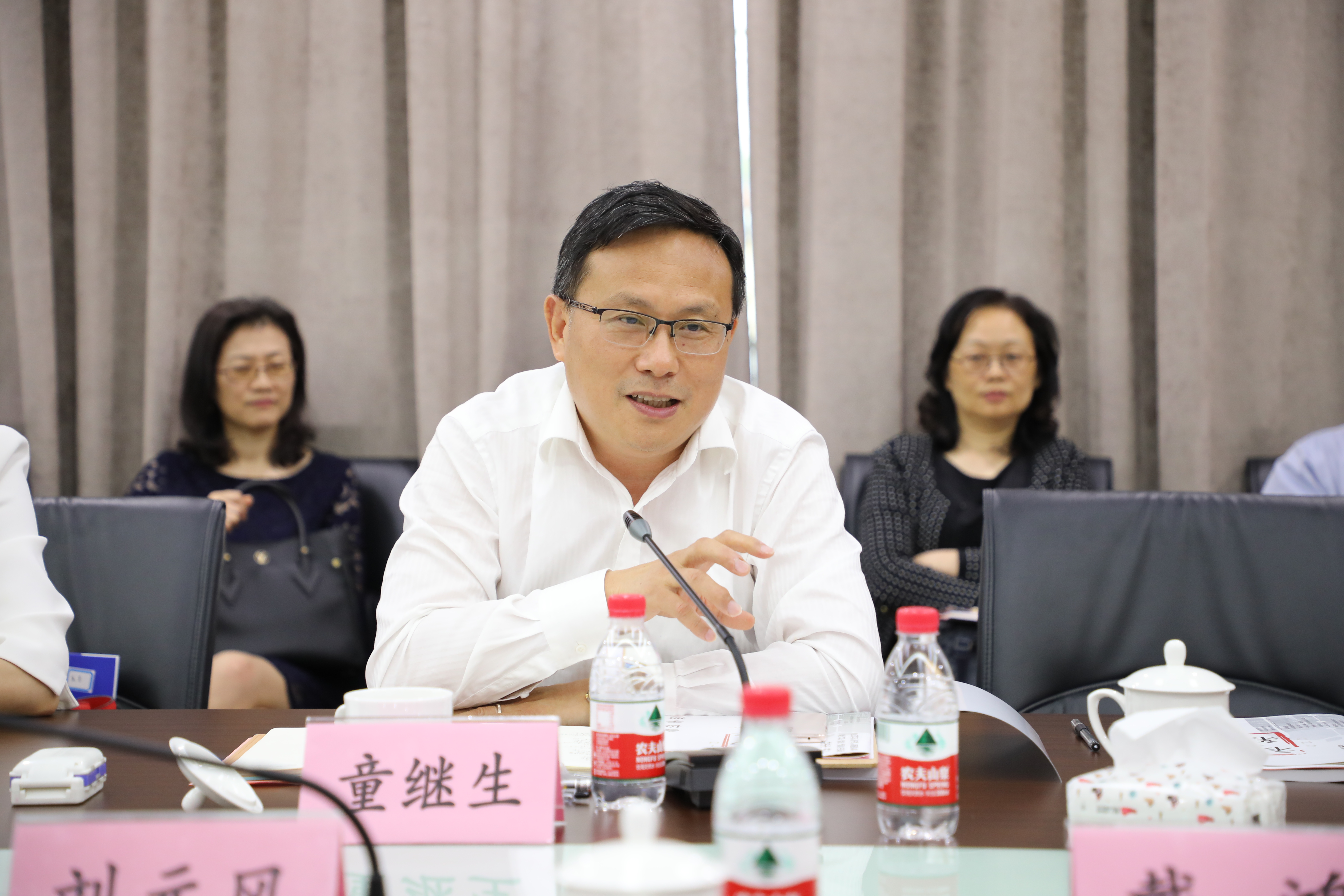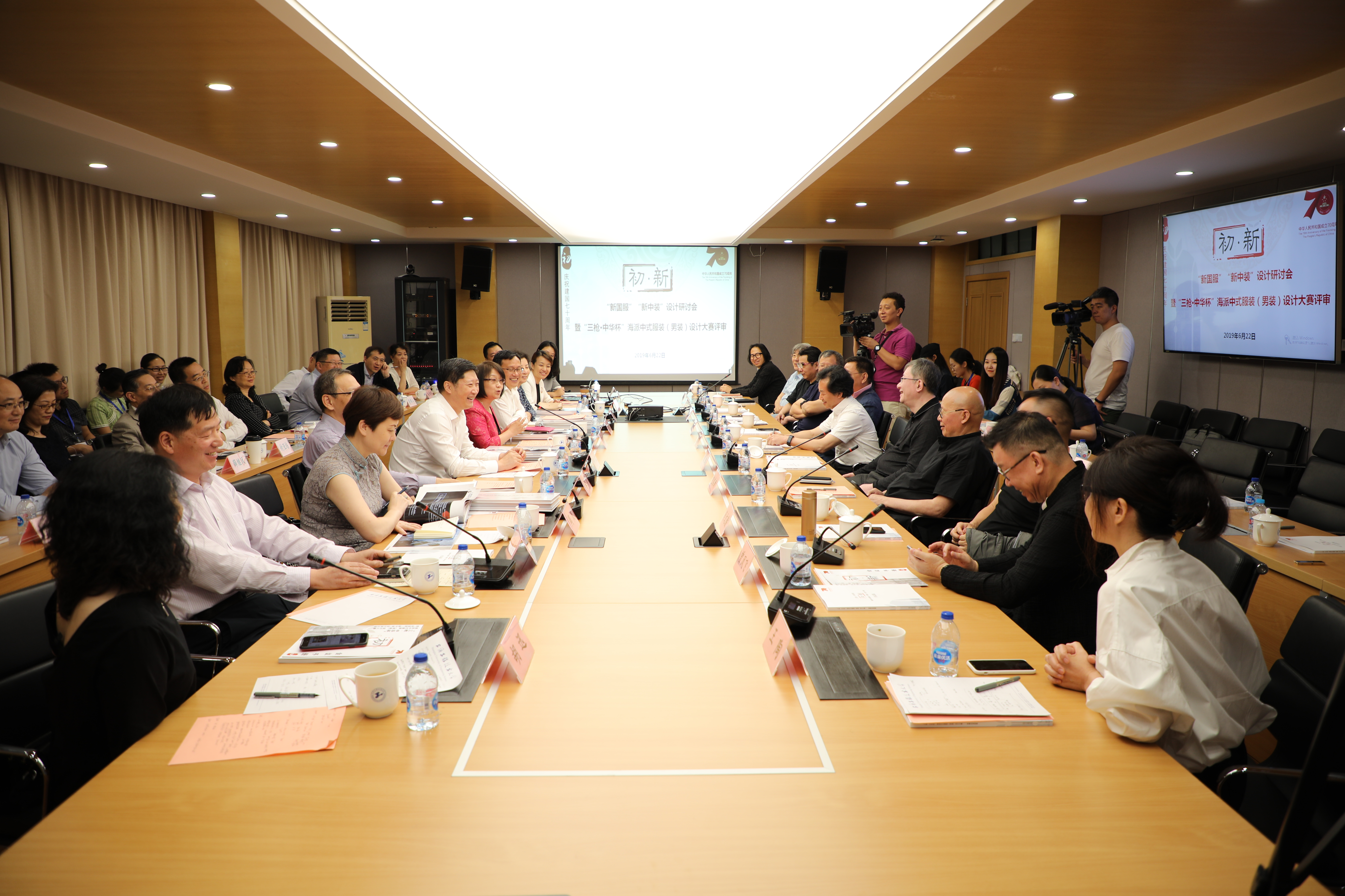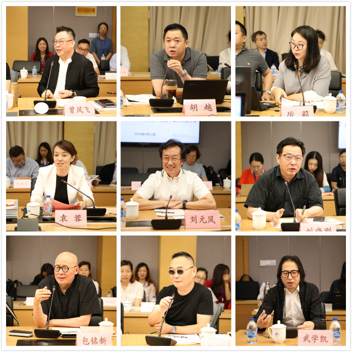 6月22日上午“新国服”“新中装”设计研讨会在我校长宁校区科创楼725会议室举行,出席研讨会的专家和学者有原北京服装学院院长、教授、博士生导师,中国服装设计师协会副主席刘元风;西安工程大学副校长、教授戴鸿;中国美术家协会服装艺术委员会副主任兼秘书长、清华大学美术学院肖文陵教授;中国设计师协会副主席、武汉纺织大学服装学院党委书记熊兆飞教授;北京服装学院服装艺术与工程学院院长王永进教授;东华大学教授、服装史论家、评论家包铭新教授;上海市商务委市场体系建设处处长周岚、东华大学教授、职业服研究所所长刘晓刚教授;中国服装设计最高奖中国金顶奖设计师、中国十大设计师武学凯;中国金顶奖设计师曾凤飞;中国纺织工业联合会服装技术专家丁锡强;中装技术专家叶炳华;TaorayWang品牌创始人&设计师王陶;浙江理工大学服装学院副院长胡迅教授等,参会的领导有上海市商务委副主任刘敏、上海工程技术大学党委书记李江、东方国际集团有限公司党委书记、董事长童继生、总裁朱勇等领导及相关研究团队教师及研究生等。会议由上海市服装创意设计与数字化技术服务平台主任、上海工程技术大学艺术学院党委书记袁蓉主持。