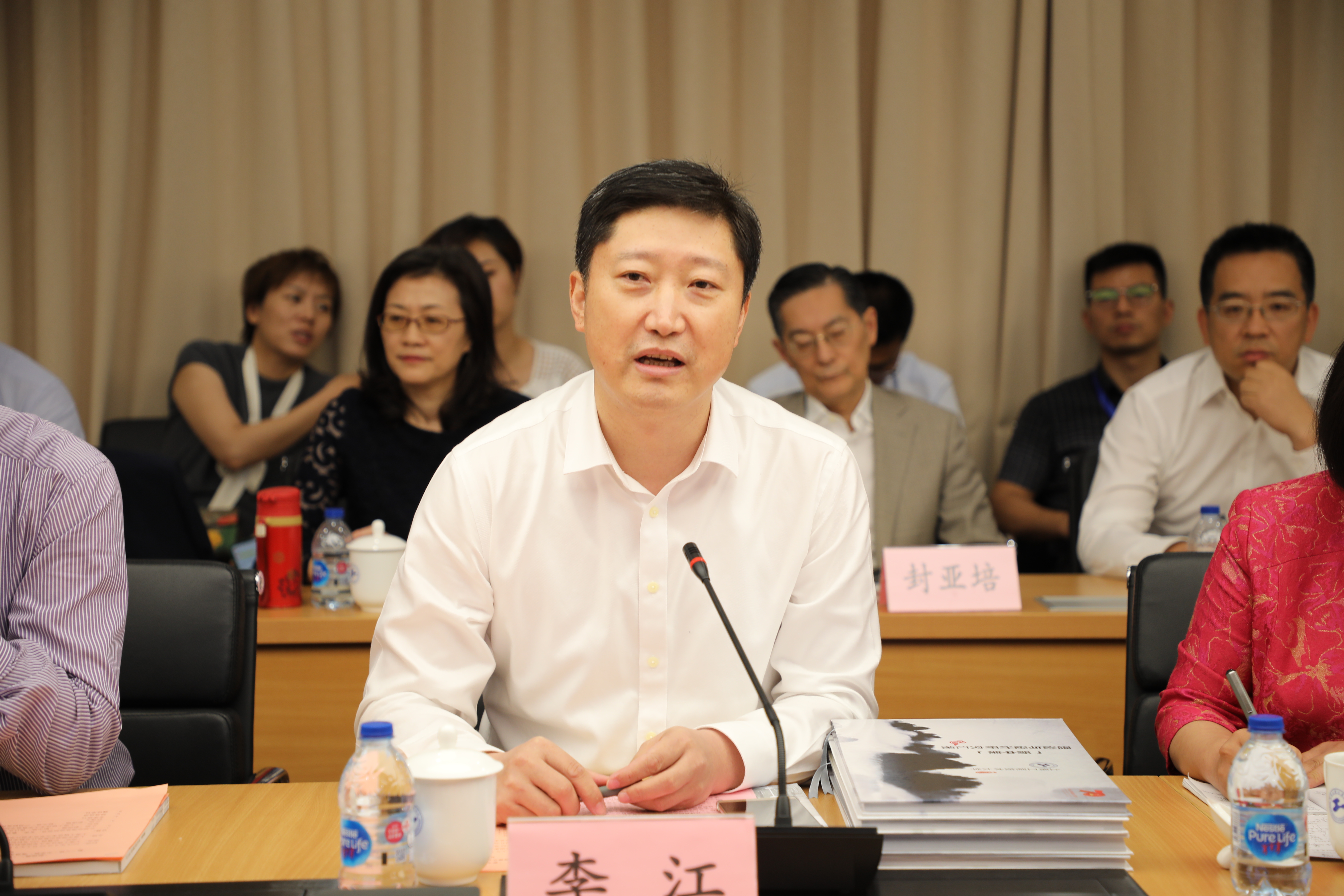 会上,上海工程技术大学党委书记李江教授对各位专家和领导的莅临表示热烈欢迎,对东方国际集团和各位专家学者的大力支持表示衷心的感谢。他提出,学校大力实施“人才强校”“特色发展”“国际化发展”三大战略,推动了学校转型发展,各项事业取得了快速发展,并表示学校将持续加强高水平应用型人才培养,为打响“上海文化”等四大品牌贡献力量。