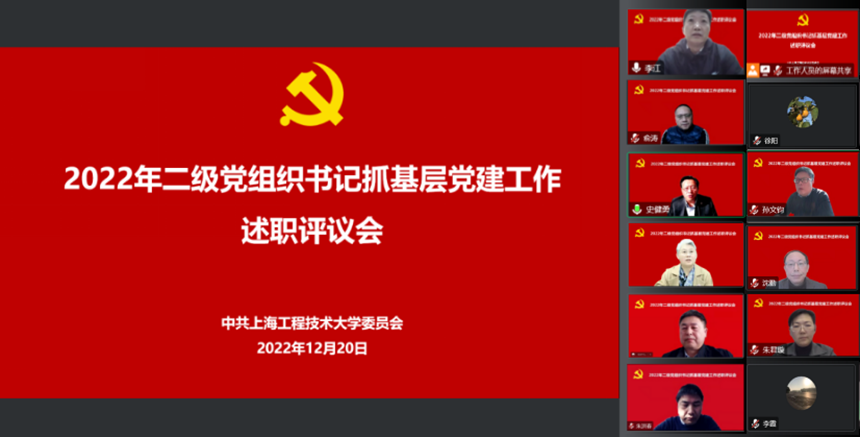 12月20日,学校党委召开2022年度二级党组织书记抓基层党建工作述职评议会。校党委书记李江,党委副书记、校长俞涛,党委副书记、工会主席史健勇,党委副书记、纪委书记门妍萍,副校长王岩松,“两委”委员,党务职能部门负责人,二级党组织书记出席会议。会议由校党委副书记、工会主席史健勇主持。