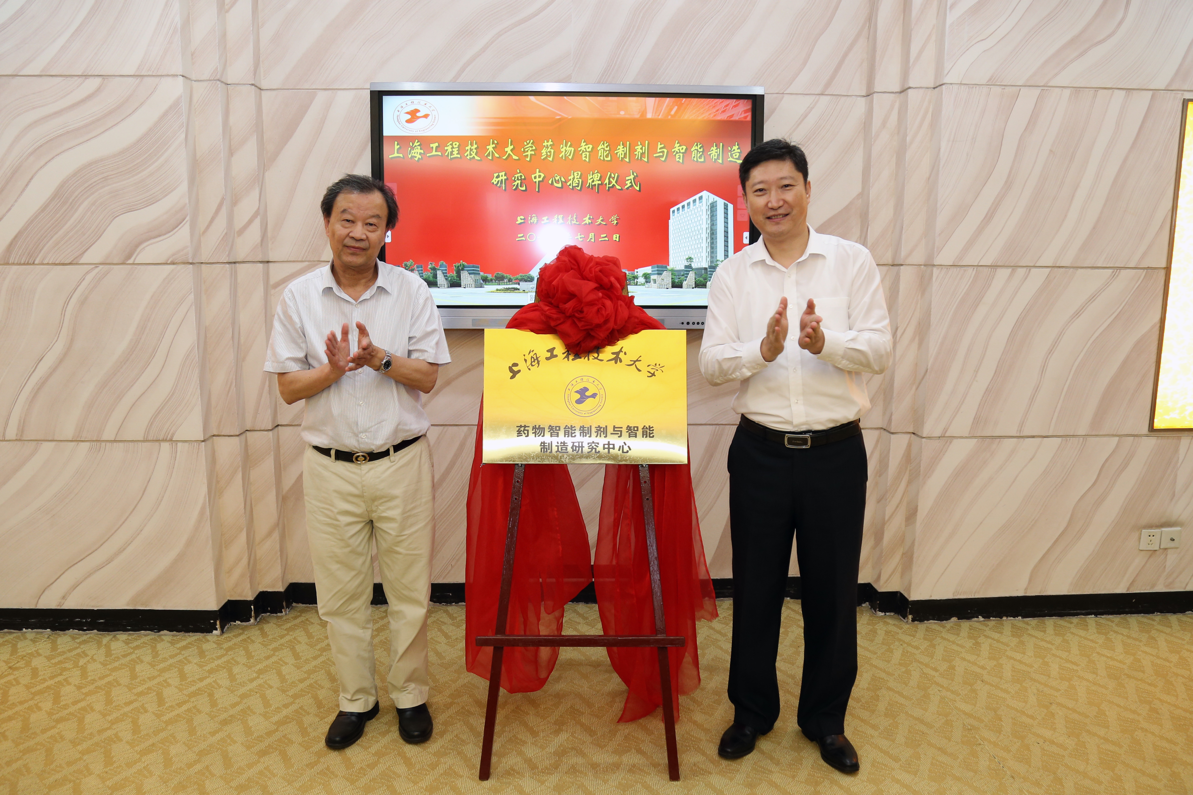 在中心成立仪式上,李江书记和侯惠民院士共同为药物智能制剂与智能制造研究中心揭牌
