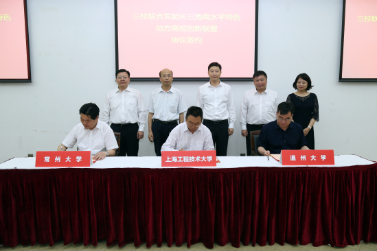 上海工程技术大学党委副书记、副校长朱晓青出席成立仪式并见证签约。上海工程技术大学副校长姚秀平,常州大学党委副书记、副校长戴国洪,温州大学副校长徐和昆分别代表三校签署了《上海工程技术大学、常州大学、温州大学关于联合发起成立长三角高水平特色地方高校创新联盟的协议》。上海工程技术大学副校长王岩松主持成立仪式。上海市教委发展规划处副处长张玲燕,以及三校相关职能部门负责人出席了仪式。