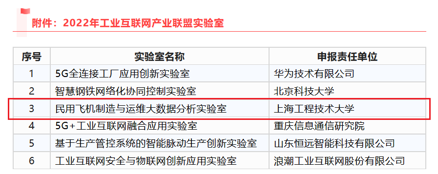 全国仅6家!我校“飞机制造与运维大数据分析实验室”入围2022工业互联网产业联盟实验室