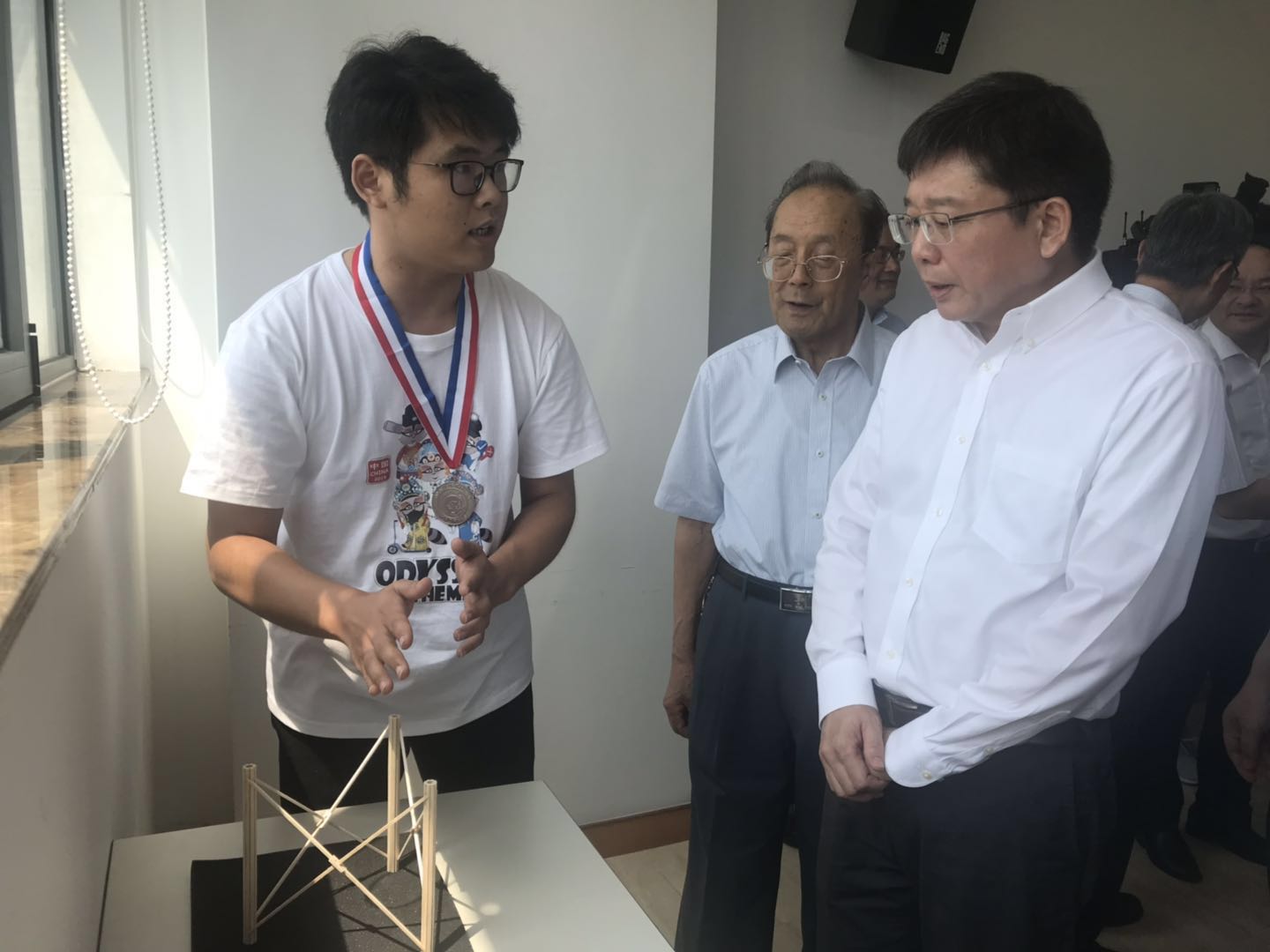 7月23日下午,上海市副市长陈群在上海教育报刊总社会见了参加第40届世界头脑奥林匹克决赛的上海获奖队。11所大中小学获奖团队师生代表参加会见,我校头脑奥林匹克参赛队作为此次世界决赛大学组亚军受到了陈群副市长的亲切会见。上海市教委副主任倪闽景,中国工程院院士、上海头脑奥林匹克协会会长翁史烈参加会见。