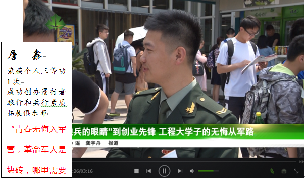 学校深入贯彻落实习近平主席关于军队精准化发展的重要指示精神,确立了“强军育人,精准征兵”的工作理念,打造“征兵、养兵、练兵、用兵”的入伍学生全过程人才培养模式,根据 “五到位”要求,开展全员、全过程、全方位的立体式征兵宣传,细化落实各项优惠政策,发挥退伍学生教育引领作用,培养保家卫国的神圣使命和爱国奉献的人生情怀。