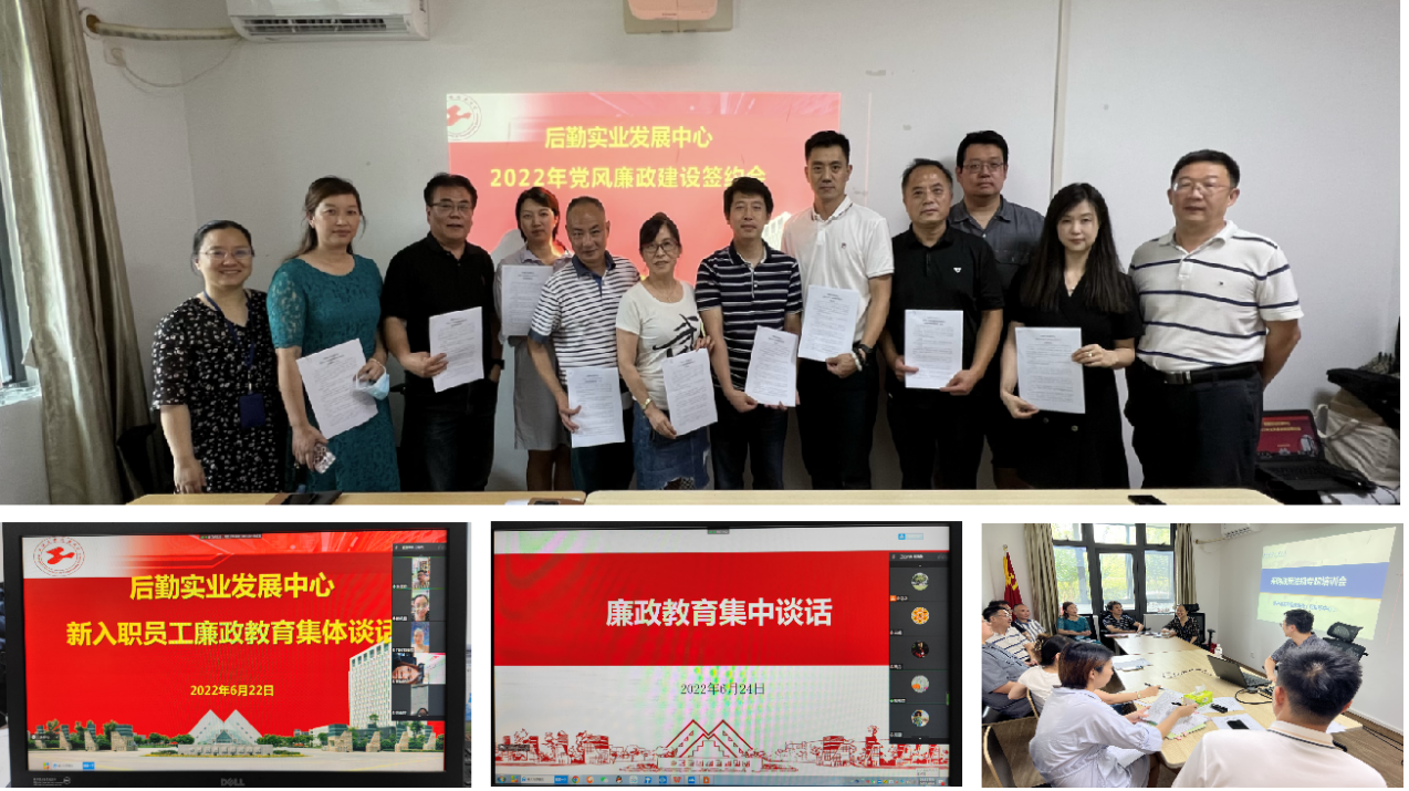 后勤实业发展中心认真学习宣传贯彻党的二十大精神,制定并落实《后勤实业发展中心党总支关于认真学习宣传贯彻党的二十大精神的实施方案》。定期开展新进教职工廉政教育谈话、教职工廉政教育集体谈话、业务相关法律法规专题学习会等;每季度编写分发后勤廉政教育简报;开展全面从严治党三级责任签约及外包服务供应商廉政承诺签约等工作,严格贯彻落实全面从严治党要求。
