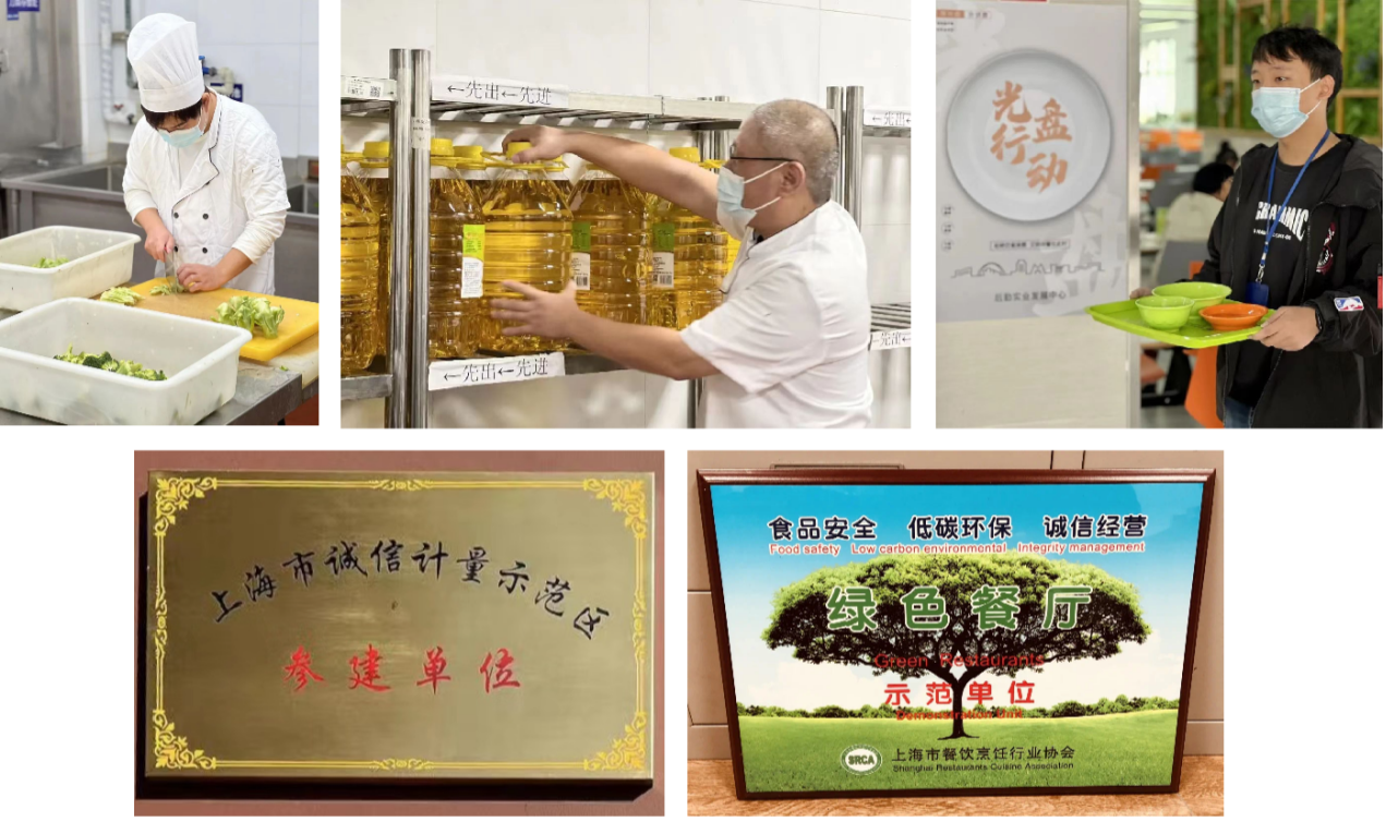 食堂始终把食品安全放在首位,科学管理守好底线,做到天天检查,及时整改落实。第一食堂通过了“6T”复评,第二食堂被授予了“上海市诚信计量示范区”参建单位;不遗余“粒”推进爱粮节粮工作。