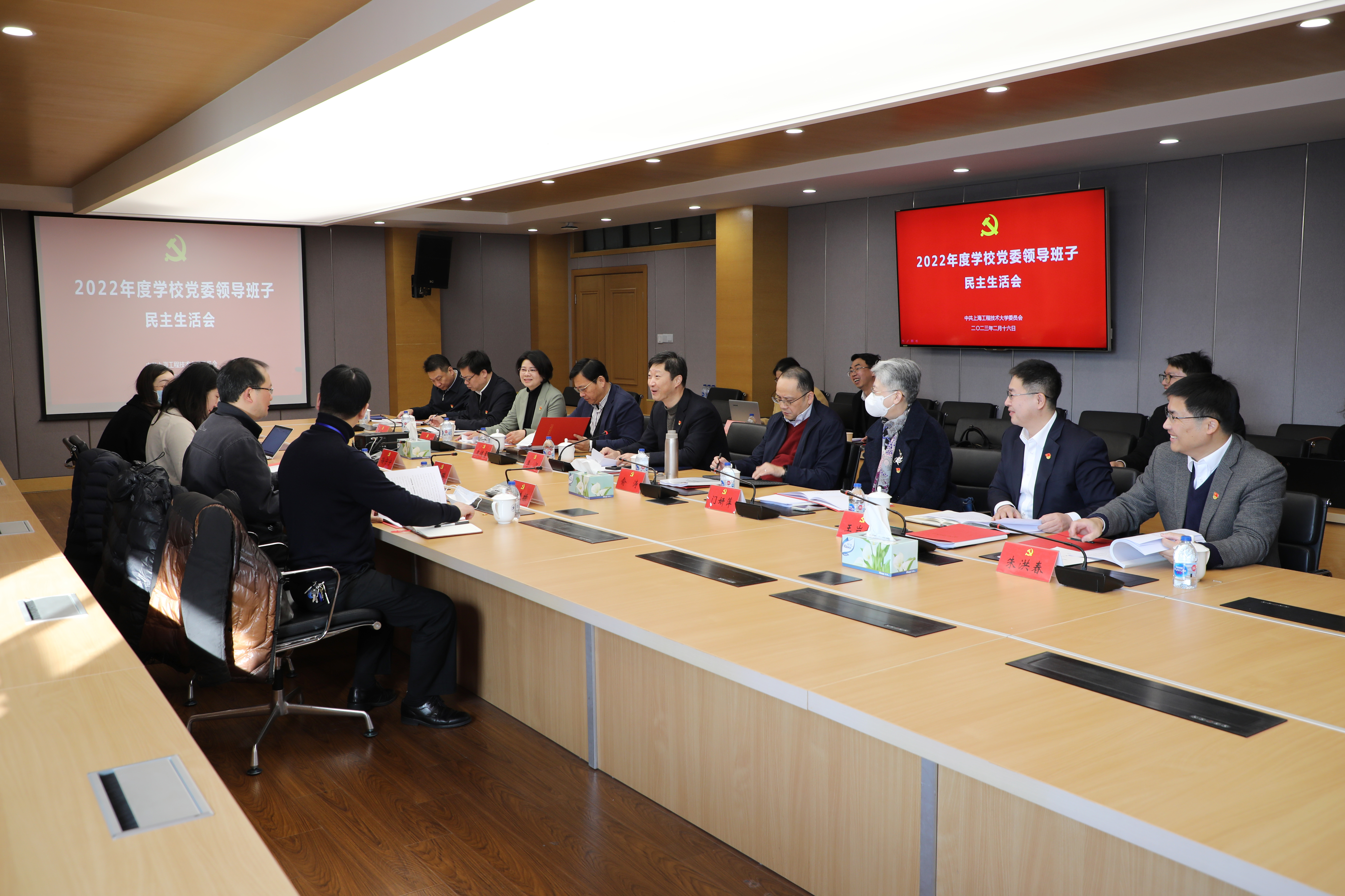李江书记代表班子通报党史学习教育专题民主生活会和巡视“回头看”专题民主生活会整改措施落实情况,介绍了2022年度党委领导班子民主生活会筹备和征求意见情况,作了领导班子2022年度民主生活会对照检查。他指出,学校领导班子对照习近平总书记关于严肃党内政治生活的重要指示精神,对照党章党规党纪,对照初心使命,通过个别访谈、座谈会、开通网络征询平台等方式,广泛征询和听取党员、干部和群众的意见。学校领导班子按照要求深刻查摆问题,其中既有面上的共性问题,也有学校工作中的个性问题,既有在班子身上直接体现的问题,也有尽管发生在基层,但根源在班子的问题,并从思想、政治、能力、制度等方面深入剖析了原因。同时,从“政治站位再提高,切实增强班子的政治判断力、政治领悟力和政治执行力”“理论武装再深化,提高班子谋划战略性、全局性和前瞻性发展的能力”“宗旨意识再强化,提高班子能办实事、讲求实效的能力”“主体责任再压实,推动全面从严治党向基层有效延伸”等方面明确了整改措施。