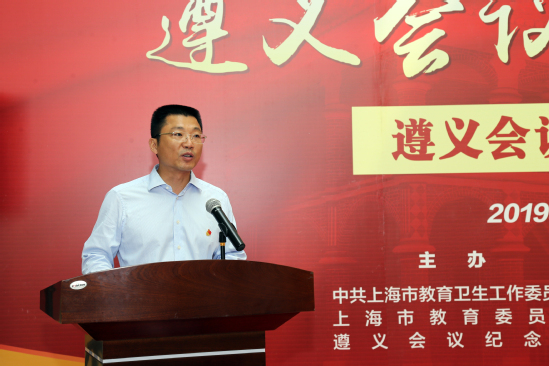 遵义市副市长尼冰在讲话中说,在举国上下喜迎中华人民共和国成立70周年之际,由上海市教卫工作党委、上海市教委、遵义会议纪念馆共同举办的“红色的足迹行进的伟业——上海市教育系统庆祝中华人民共和国成立70周年主题巡展”活动,在有着“沪上最美校园”之称的“程园”隆重开展了!这是党的诞生地上海与党的转折地遵义,共同献礼中华人民共和国成立70周年华诞的重要活动,必将推动两地的爱国主义教育和革命传统教育迈上新高度。