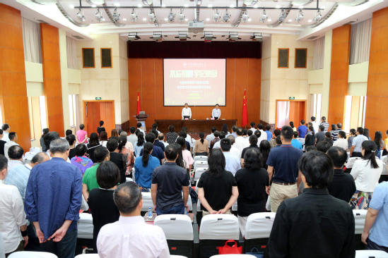 为深入学习贯彻习近平总书记在“不忘初心、牢记使命”主题教育工作会议及指导开展“不忘初心、牢记使命”主题教育时的重要讲话精神,全面落实党中央、上海市委、上海市教卫工作党委关于主题教育的部署要求,根据学校开展“不忘初心、牢记使命”主题教育的统一安排部署,举办“领导干部读书班”以及“党支部书记轮训培训班”。9月20日上午在松江校区行政楼B301会议室举行开班式并进行了集体学习研讨。全体校领导、全体中层干部、全体党支部书记出席了集体学习研讨。学校在松江校区、长宁校区、虹口校区设立分会场,同步直播开班式和集中学习的全过程。