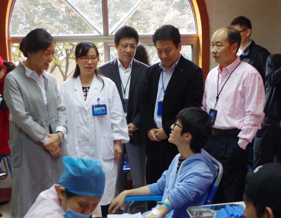 校党政领导高度重视献血工作,多次到现场慰问参加献血的师生。校领导与献血的同学亲切交流,询问他们的身体情况,嘱咐他们注意休息、补充营养,并高度赞扬了献血师生无私奉献的精神,叮嘱志愿者和相关部门做好服务保障工作。献血工作开展过程中,各相关部门密切配合,门诊部派出最强的医务力量在现场做应急工作;后勤实业发展中心积极协调现场车辆运输、早餐发放等工作;食堂开设了无偿献血营养窗口,为献血的师生精心搭配了营养菜肴;宿舍服务中心除了做好黑板报宣传外,每栋宿舍楼的值班员都及时关心献血回来的同学;校团委每天组织30余名志愿者在献血现场,为献血的学生提供志愿服务。