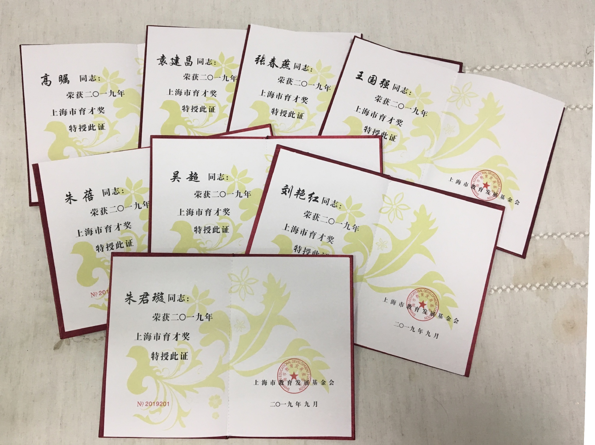 近日,上海市教育发展基金会公布了2019年“上海市育才奖”评选结果,我校王国强、张春燕、袁建昌、高瞩、朱君璇、刘艳红、吴超、朱蓓八位教师获奖。