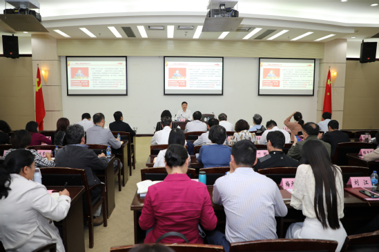 根据市委要求和“不忘初心、牢记使命”主题教育安排,在前期深入基层、认真开展调查研究和听取意见的基础上,结合学校校情,10月22日,校党委书记李江以《推进全面从严治党主体责任向基层有效延伸》为题率先讲党课,市委第七巡回指导组组长徐力、全体党口校领导、全体党务部门负责人、二级党组织书记、副书记、组织员出席会议。党课由主题教育办公室主任、党委副书记、副校长朱晓青主持。