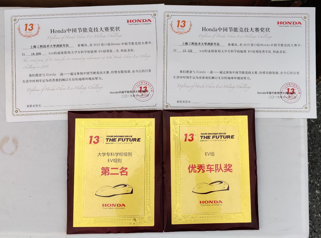 10月31日至11月3日,2019Honda中国节能竞技大赛在广东肇庆国际赛车场举行,共有来自全国高校和企业的66支电车(EV)代表队和70支燃油(EP)代表队参赛。经过激烈角逐,我校机械与汽车工程学院虎跃车队以18608km成绩获得EV组别第二名,并荣获优秀车队奖。