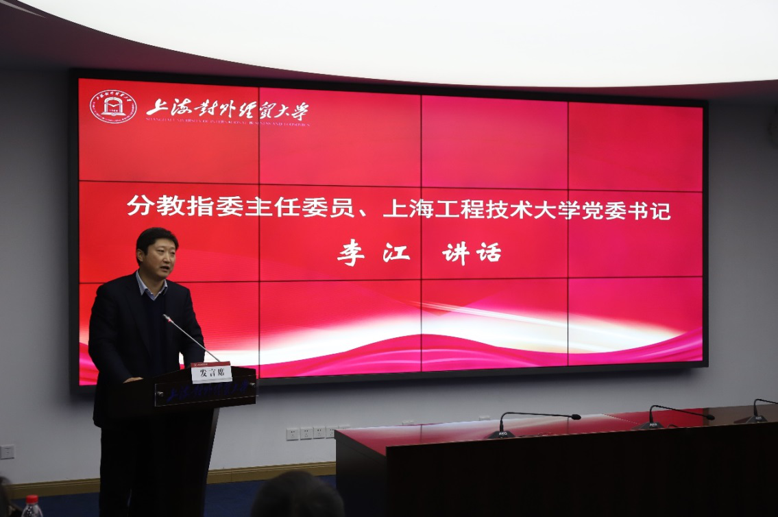 12月21日,由上海工程技术大学与上海对外经贸大学联合主办的2019年上海市“形势与政策”课骨干教师研修班结业汇报暨上海市“形势与政策”课教学论坛,在上海对外经贸大学古北校区举行。上海市人大外事委、侨民宗委主任委员、教育部“形势与政策”课分教学指导委员会主任委员高德毅教授,上海工程技术大学党委书记、上海高校“形势与政策”课分教学指导委员会主任委员李江教授出席论坛。上海高校“形势与政策”课分教学指导委员会委员,上海市教委德育处、上海市学生德育发展中心有关领导以及2019年上海高校“形势与政策”课教学大比武获奖教师暨上海市“形势与政策”课研修基地学员参加论坛。