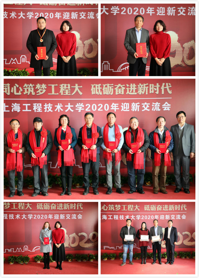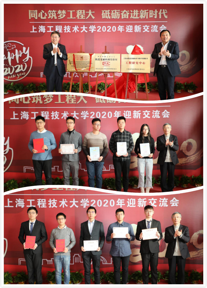 迎新交流会上,校党委副书记、工会主席史健勇 ,副校长王岩松共同为“上海工程技术大学轨道交通检测实验室”“城市轨道交通综合应急技术与装备交通运输行业研发中心”“上海市轨道交通振动与噪声控制技术工程研究中心”揭牌;校党委副书记、纪委书记鲁嘉华为获得国家级竞赛一等奖的学生及团队颁奖;校党委副书记、副校长朱晓青分别为上海高校后勤标兵(绿叶奖)、第二届中国进口博览会志愿服务先进集体、上海市“为人为师为学”宣传典型三个获奖代表和团队颁奖;副校长王岩松分别为学校2019年校长特别奖获得者王安斌教授轨道交通研究团队、2022年世界大学生五人制足球锦标赛申办工作小组、人才办团队颁奖;现场还举行了2019年退休教职员工荣退仪式,副校长夏春明向2019年退休教职员工颁发荣退纪念证书。来自城市轨道交通学院的王安斌教授和艺术设计学院的叶晓娴教授分别作了交流发言。