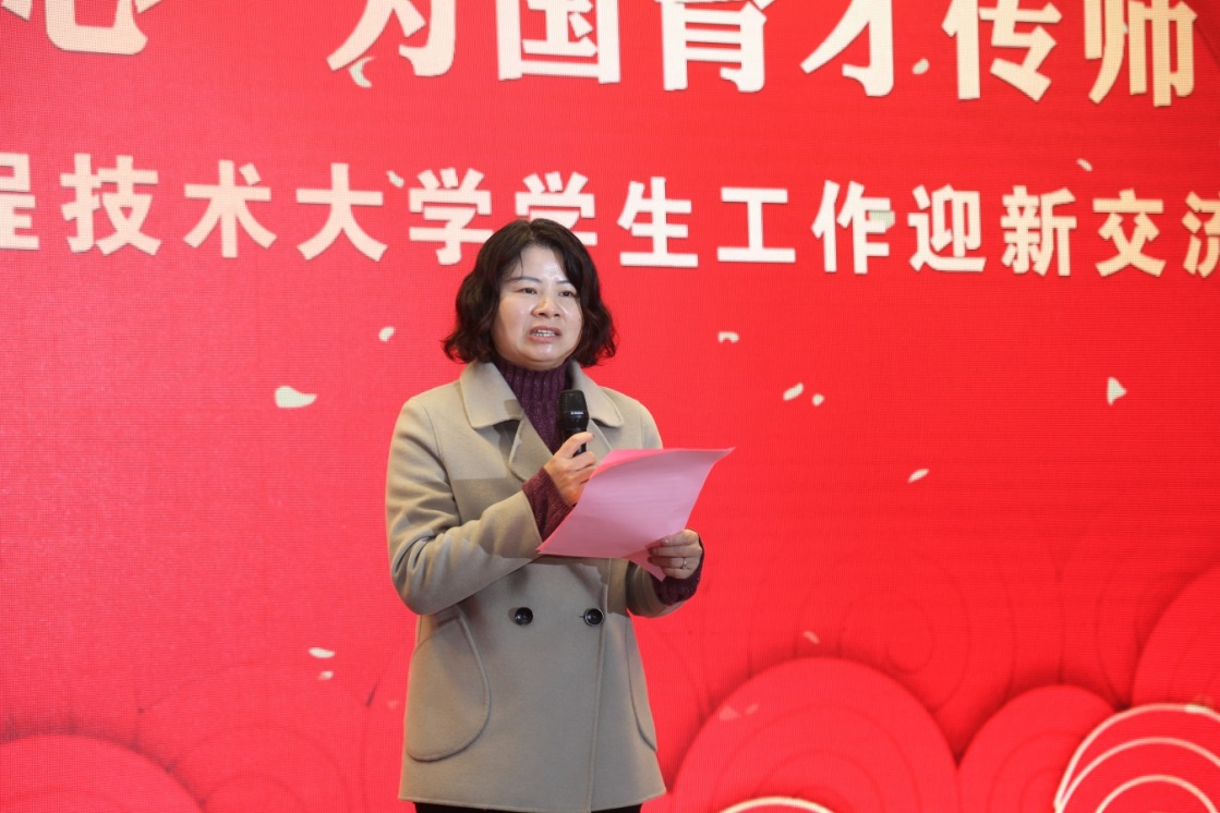 1月7日上午,以“为党育人践初心、为国育才传师道”为主题的2020年学生工作迎新交流会在图文信息中心第二报告厅举行。校党委书记李江,校党委副书记、副校长朱晓青,校党委常委、党委宣传部部长徐阳出席活动,相关部门和学院负责人、全体辅导员和学生代表参加活动。