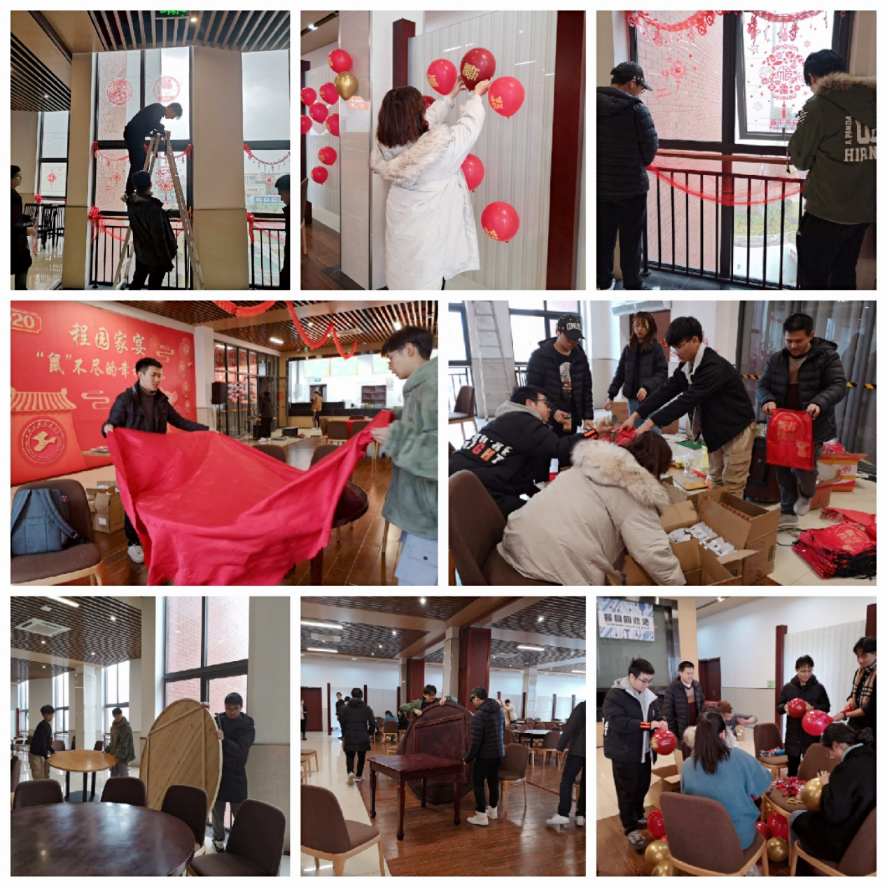 本次留校学生新春联欢会暨年夜饭活动现场也成为了学生们体验劳动的思政课堂。此次活动从会场布置、桌椅搬运到端菜上菜均由参加活动的学生全程组织、参与,学生们乐在其中,懂得了劳动最光荣、劳动最崇高、劳动最伟大、劳动最美丽。