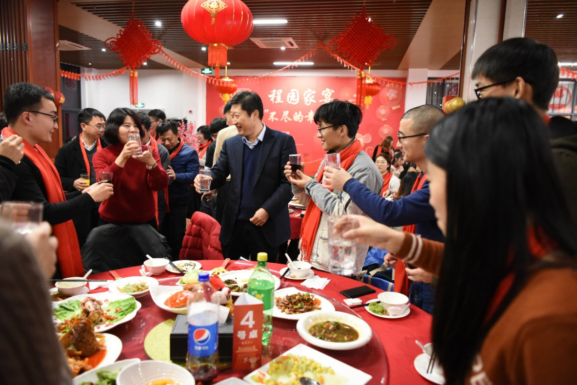 席间,校领导、老师们与同学们举杯畅饮,李江书记、朱晓青副书记为同学们送上工程大版窗花和工程大原创贺岁福袋,让同学们感受到了“鼠”不尽的年味和新春气氛。