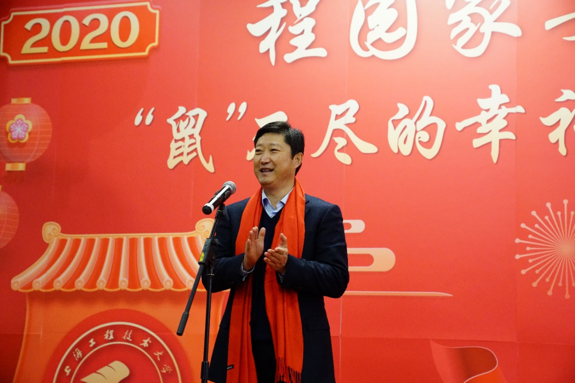 金猪辞旧岁,瑞鼠兆新年。1月17日(农历腊月二十三)晚,松江校区新落成的程园餐厅内座无虚席,上海工程技术大学2020年留校学生新春联欢会暨年夜饭活动在欢乐祥和的气氛中举行。校党委书记李江,校党委副书记、副校长朱晓青,学校相关职能部处、学院负责人与留校学生欢聚一堂,共同迎接农历庚子年新春佳节的到来。
