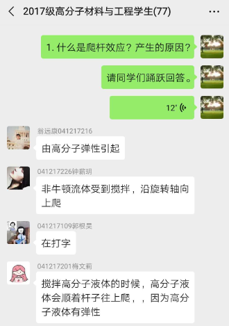线上授课的关键点在哪里?化工学院张书华教授,通过一周的教学,总结了自己的经验:一是准备录播课件是必要的,可以保证授课顺利进行;二是在课间和课后穿插讨论环节很重要,既可以缓解学生听课疲劳,又可以掌控学生听课状态,营造教学氛围的同时,有利于提高授课质量。听了张老师课程的2017级高分子材料与工程专业沈乐斐同学说:“张老师的讲解十分清晰,PPT和录音一应俱全,课上对于老师提出的问题,同学们都踊跃回答讨论,给出自己的答案。”