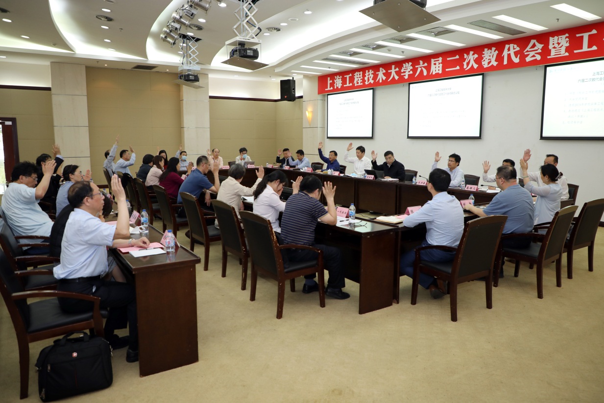会议表决通过了《上海工程技术大学六届二次教代会暨工代会闭幕式议程(草案)》,审议确定了闭幕式交流发言代表和《上海工程技术大学六届二次教代会暨工代会决议(草案)》,10位教代会代表团团长交流了分团讨论的情况,针对各代表团提出的意见和建议,学校还将在闭幕式上以《校长工作补充报告》的形式进行回应和答复。