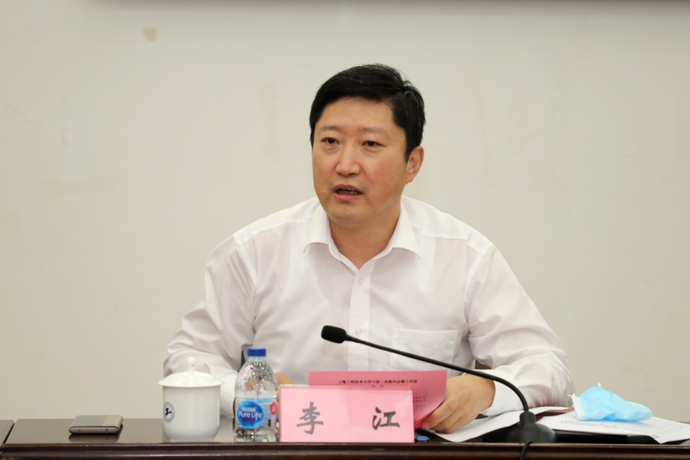 会上,校党委书记李江发表讲话。他指出,学校高度重视教代会,注重发挥教代会的实效,制度性地安排了三天的分团讨论,各代表团以高度的责任感和使命感,为学校改革转型发展积极建言献策。本次大会充分发扬了民主,凝聚了代表们的智慧,维护和落实了教代会代表的知情权、参与权、表达权和监督权。为继续开好本次“双代会”,李江书记提出三点要求:一是发挥教代会的民主管理,持续推进学校治理体系和治理能力现代化。要深刻学习和领会此次全国“两会”精神,将人民代表大会蕴含的代表性民主的要求和政治协商会议体现的协商性民主的精髓,内化到学校民主管理实际工作中来;二是凝聚改革发展共识,助推学校事业高质量的发展。充分发挥教代会各办事机构的作用,广泛听取教职工的意见和建议,明确改革发展的最终目的,让广大教职工共享改革发展成果。三是履职尽责,继续做好本次教代会后续工作。教代会是学校全体教职工政治生活中的一件大事,各项规范性和程序性的要求也很高,要严格履行教代会的制度性要求和程序。