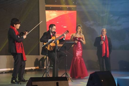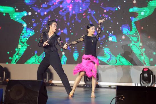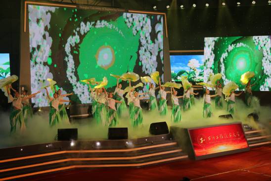 第三篇章“国际化发展”中,蒙古国留学生带来的《顶碗舞》技巧高超,富有浓郁的民族特色;校工会选送的乐器演奏节目《一步之遥》、《自由探戈》、《加勒比海盗主题曲》让大家重温了耳熟能详的经典乐曲;歌曲串烧组合《爱在工程大》由来自巴西、西班牙、韩国的留学生用中文深情演唱;航空运输学院和校工会选送的拉丁舞串烧《炫舞飞扬》将工程大学子的精气神表现得淋漓尽致;最后,化工化学学院师生表演的压轴谢幕歌舞《bang、bang、bang》、《相亲相爱》为迎新总结会画上完美的句号。