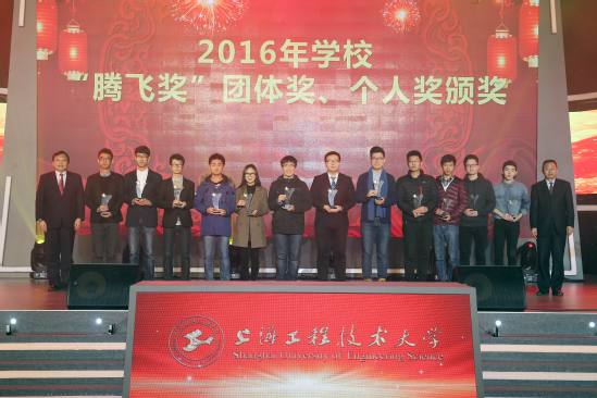 总结会的每个篇章还巧妙地穿插了颁奖环节,校领导分别为2016年“校长特别奖”获得者、2016年荣退教职工代表、“全国五四红旗团委”获得者、2016年学校“腾飞奖”团体奖与个人奖获得者等各类竞赛中获得国家级奖项的学生团队与个人颁发奖状和奖杯。