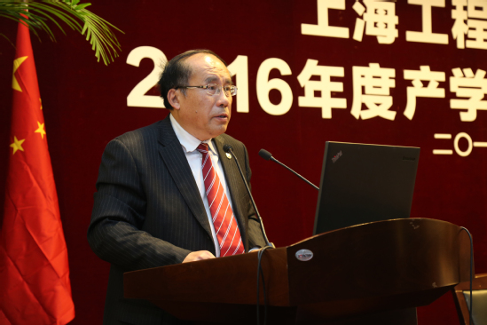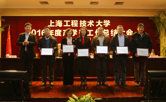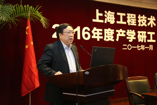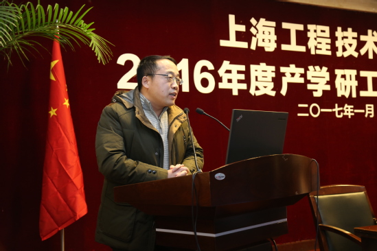 1月19日下午,上海工程技术大学2016年度产学研工作总结大会在图文信息中心第二报告厅举行。校党委书记李江,校党委副书记夏斯云,副校长姚秀平、鲁嘉华出席,全体中层干部及教师代表参会,会议由鲁嘉华副校长主持。