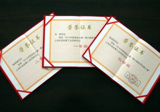 在此次大赛中,高职学院、高级技校吴昊、陈明峰、赵成凯三名同学分获工业控制项目一、二、三等奖,姜一东老师获“金牌指导教练”称号,江山老师获大赛“优秀指导教练”称号,上海工程技术大学高职学院获大赛“优秀组织奖”,上海市高级技工学校获工业控制项目“优秀集训组织奖”,上海市高级技工学校“工业控制项目”获为竞赛工作做出特别贡献表彰。