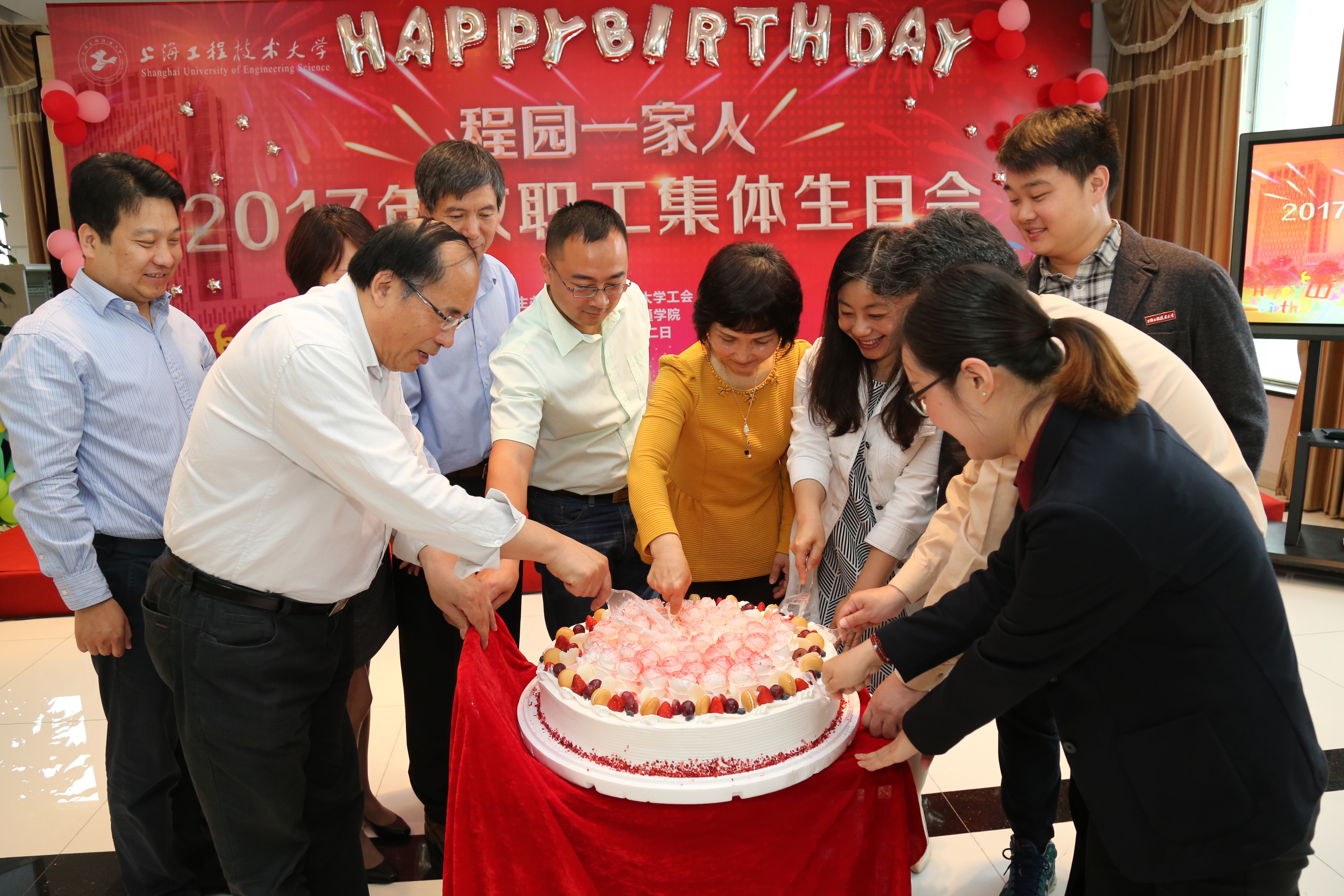 “生日”是一个温情的日子,“程园大家庭”每一位成员的生日学校不会忘记,“程园大家庭”每一位成员的辛苦学校不会忘记。5月12日上午,由校工会主办、城市轨道交通学院承办的“程园一家人”2017集体生日会在行政楼19楼温情举行,校党委副书记夏斯云,党办、校办、组织部、人事处、团委、工会和城市轨道交通学院负责人出席,各部门工会主席,各部门逢十教职工代表和当天生日教职工参加了生日会。