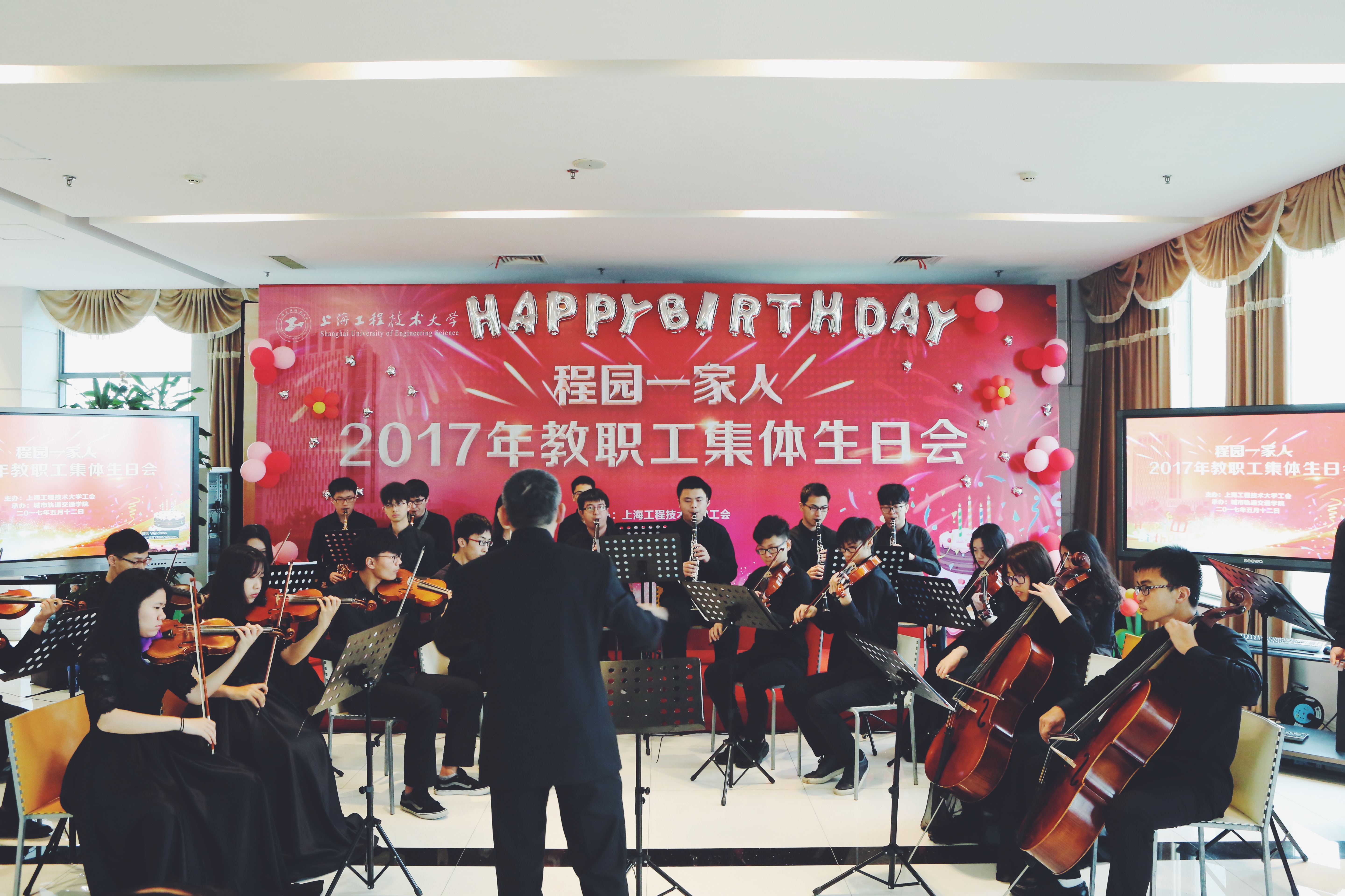 生日会以交响乐《猫》选段《回忆》、久石让作品《summer》拉开帷幕。校党委副书记夏斯云向逢30、40、50和当天过生日的教职工送上一束康乃馨,代表学校祝福这些教工生日快乐。